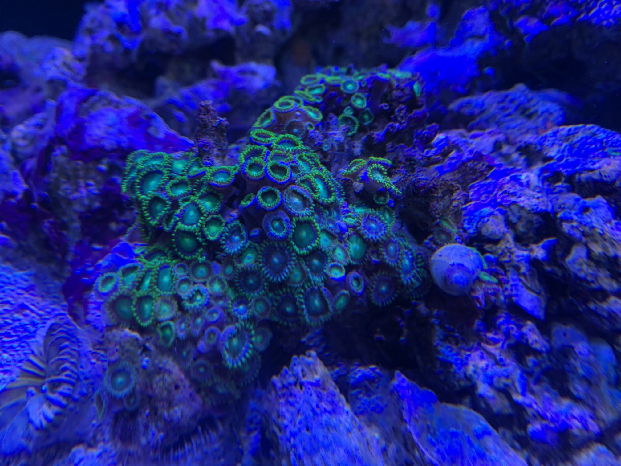 きれいな蛍光グリーンで、長いポリプが特徴的なラーメンスタポちゃんです。