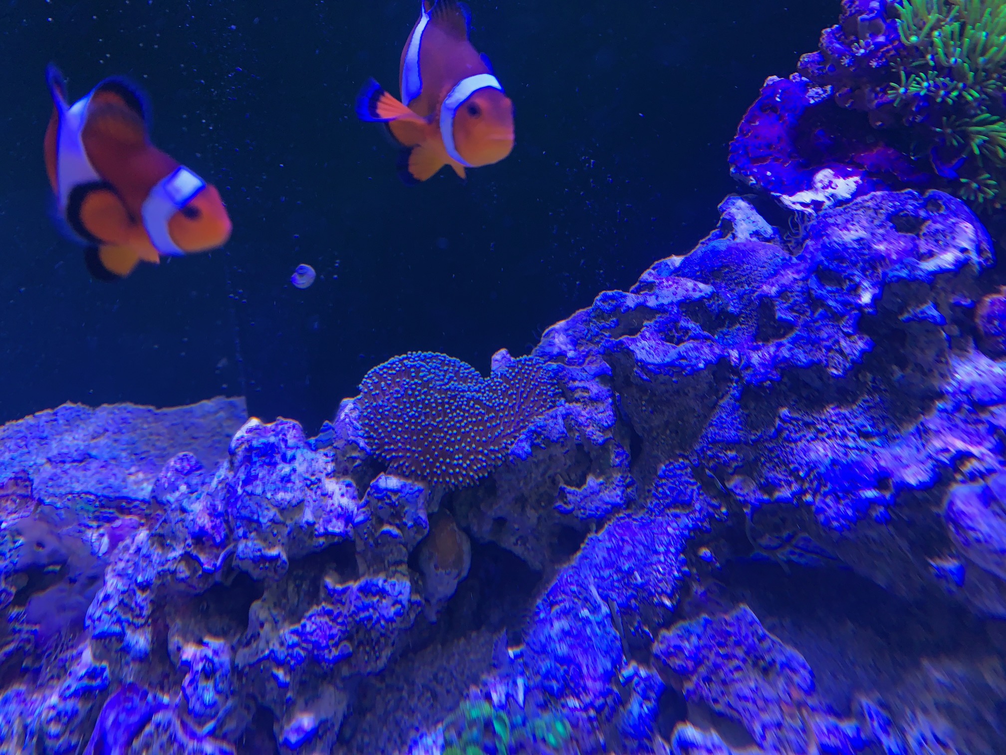 生き残ったカクレクマノミとギンガハゼ、あとヒメシャコガイだけの少し淋しい水槽になってしまいましたが・・・
