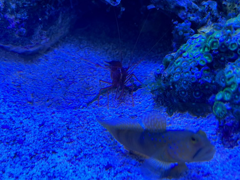奥の岩穴の中で銀河ハゼと同棲していて、普段はなかなか姿を見せてくれないんです・・・