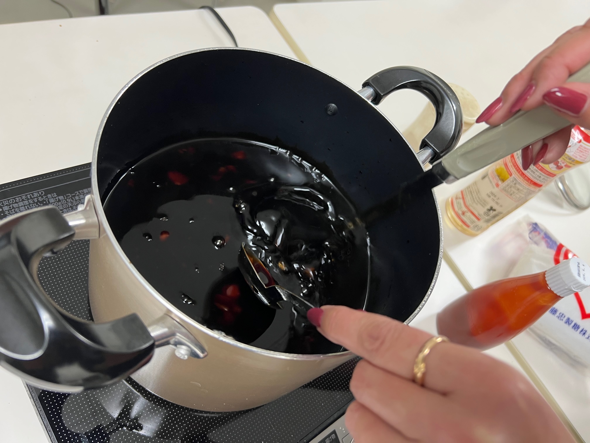ソースの方はウスターソースをベースに、ケチャップやみりん、めんつゆなどを温めながら混ぜていきます。