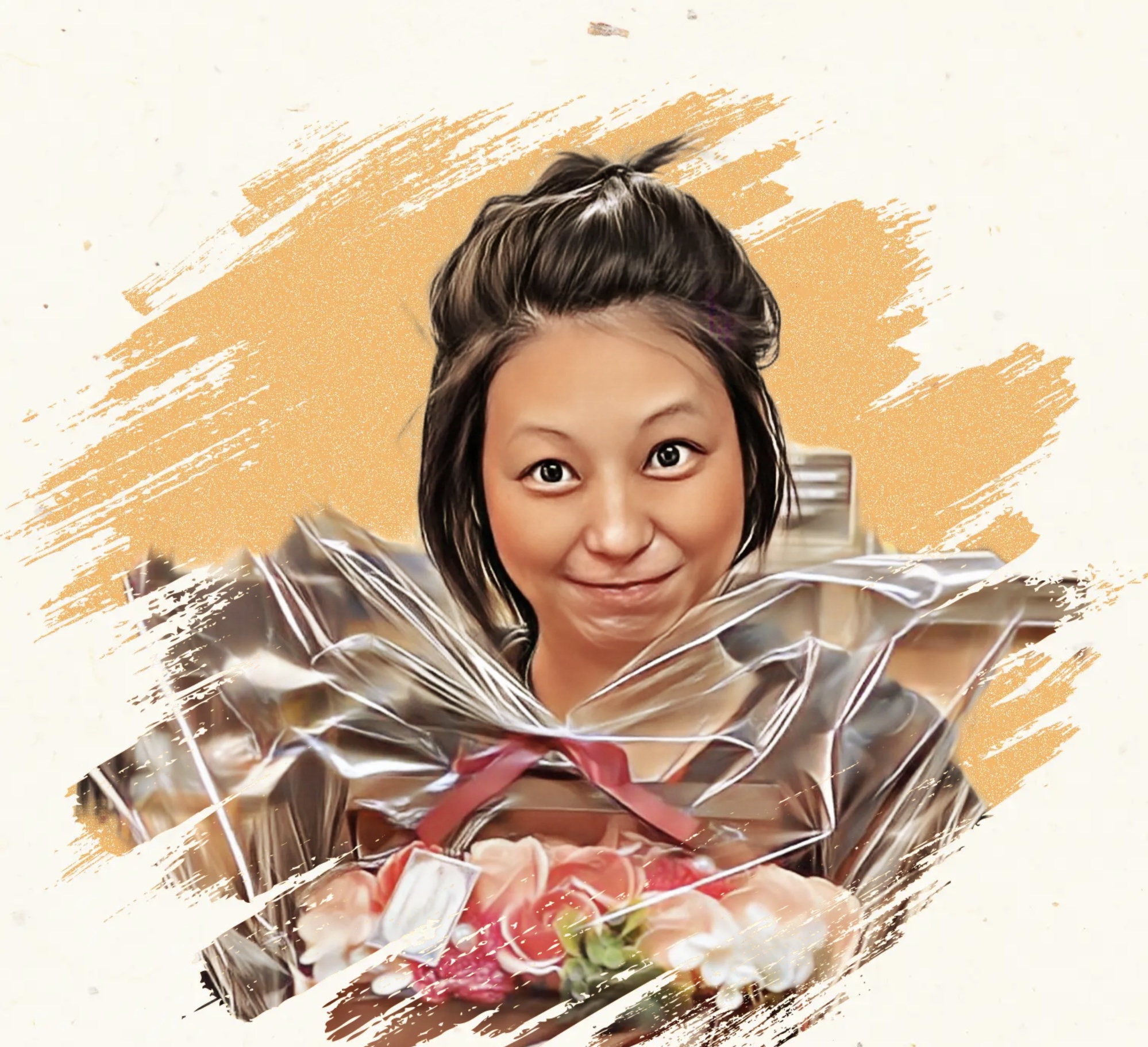 さすがに”すっぴん”の写真を載せると怒られそうですので、イラスト風に加工して上げてみました。