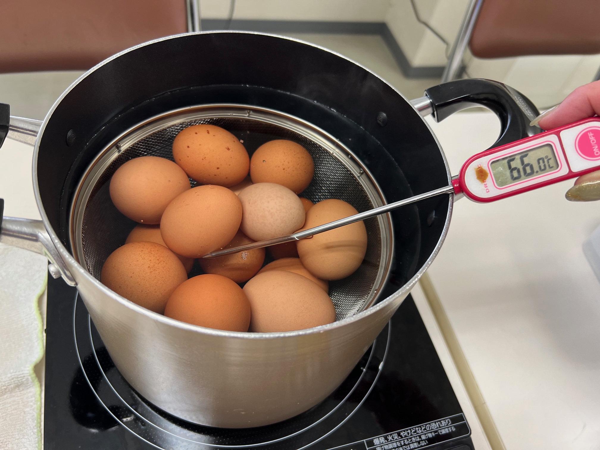 温泉たまごは65℃~70℃のお湯で18分くらい茹でるんだそうです。