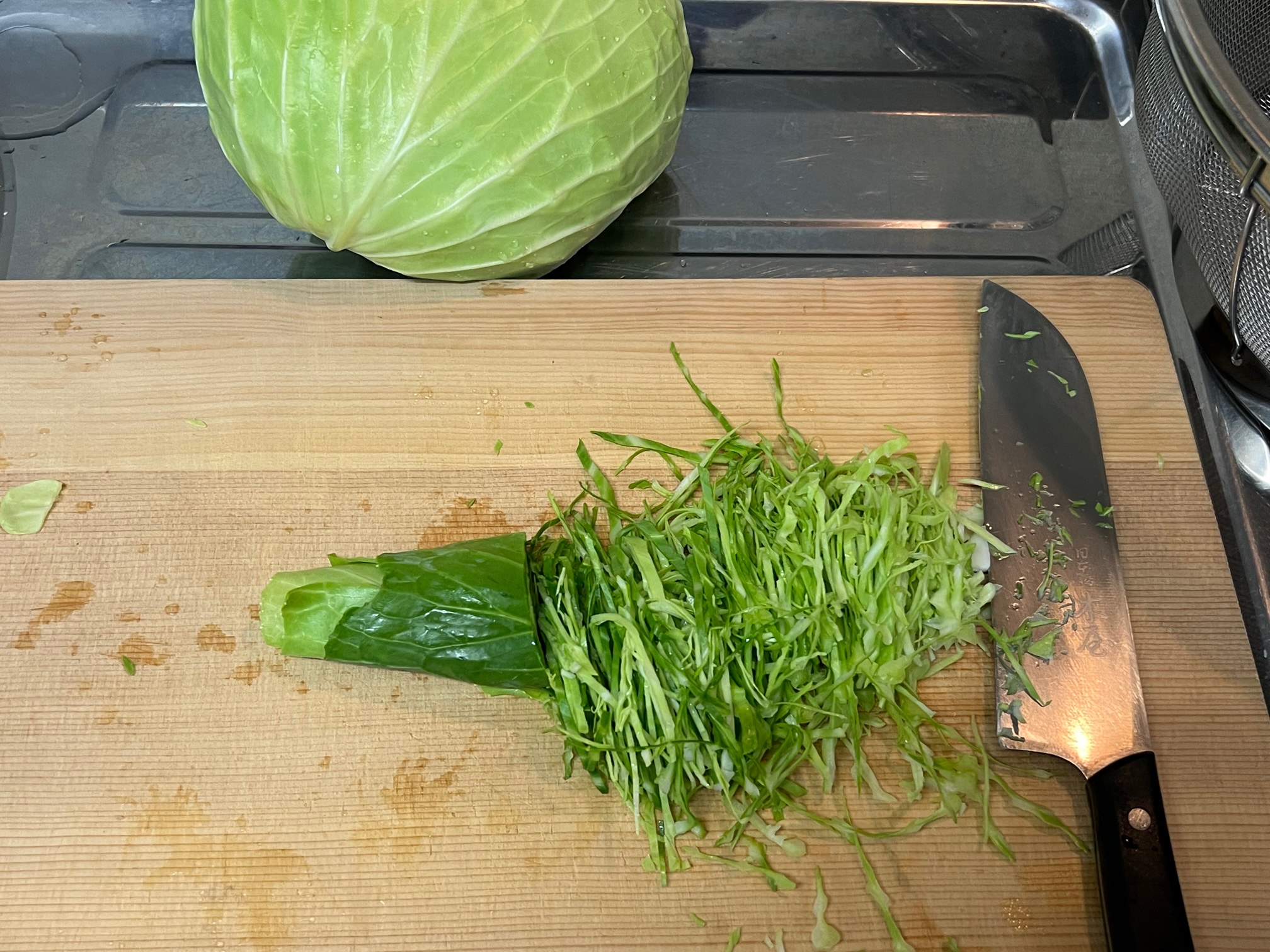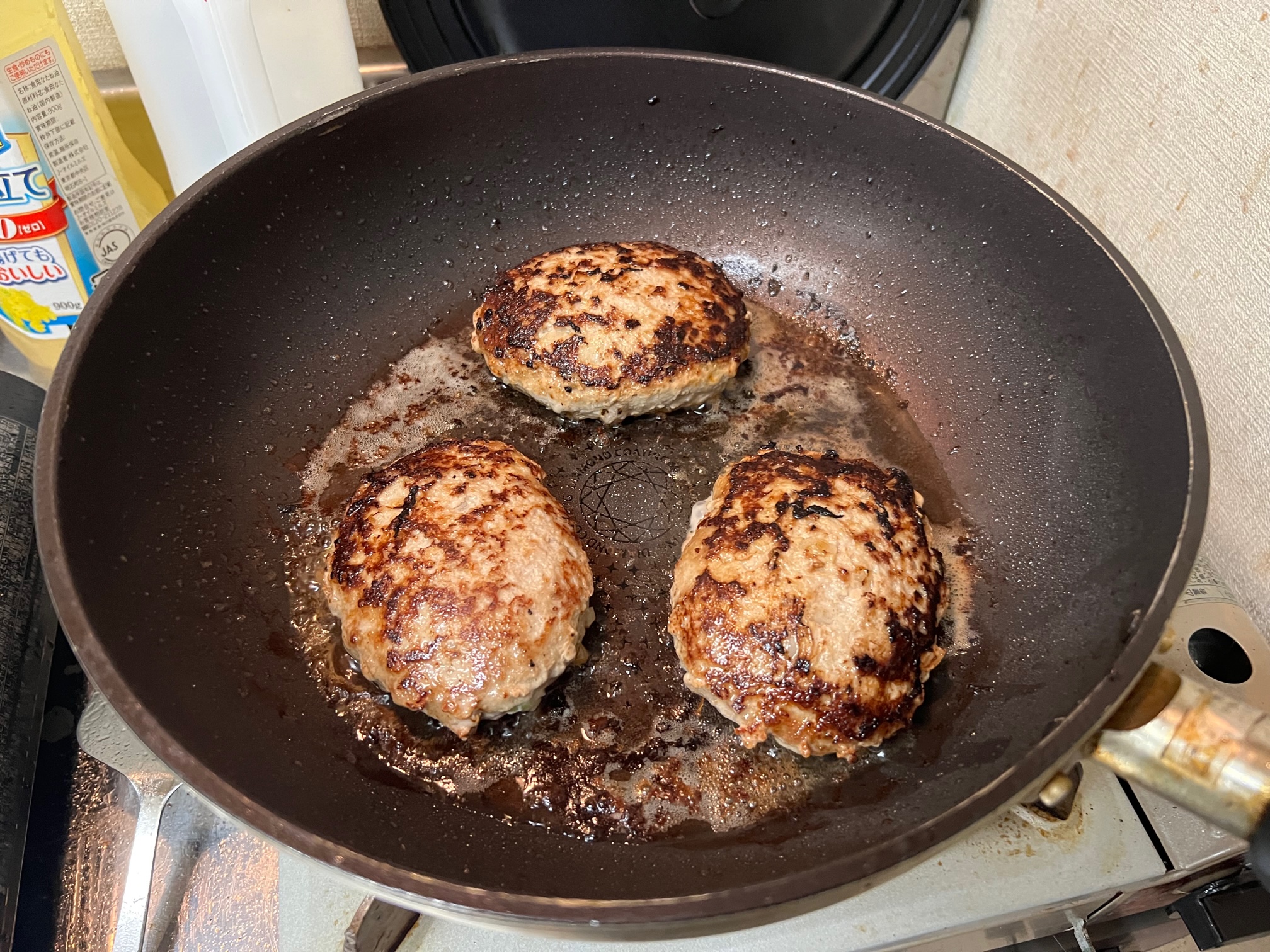 キャベツの千切りを終えてから、私はハンバーグを焼きに掛かります。