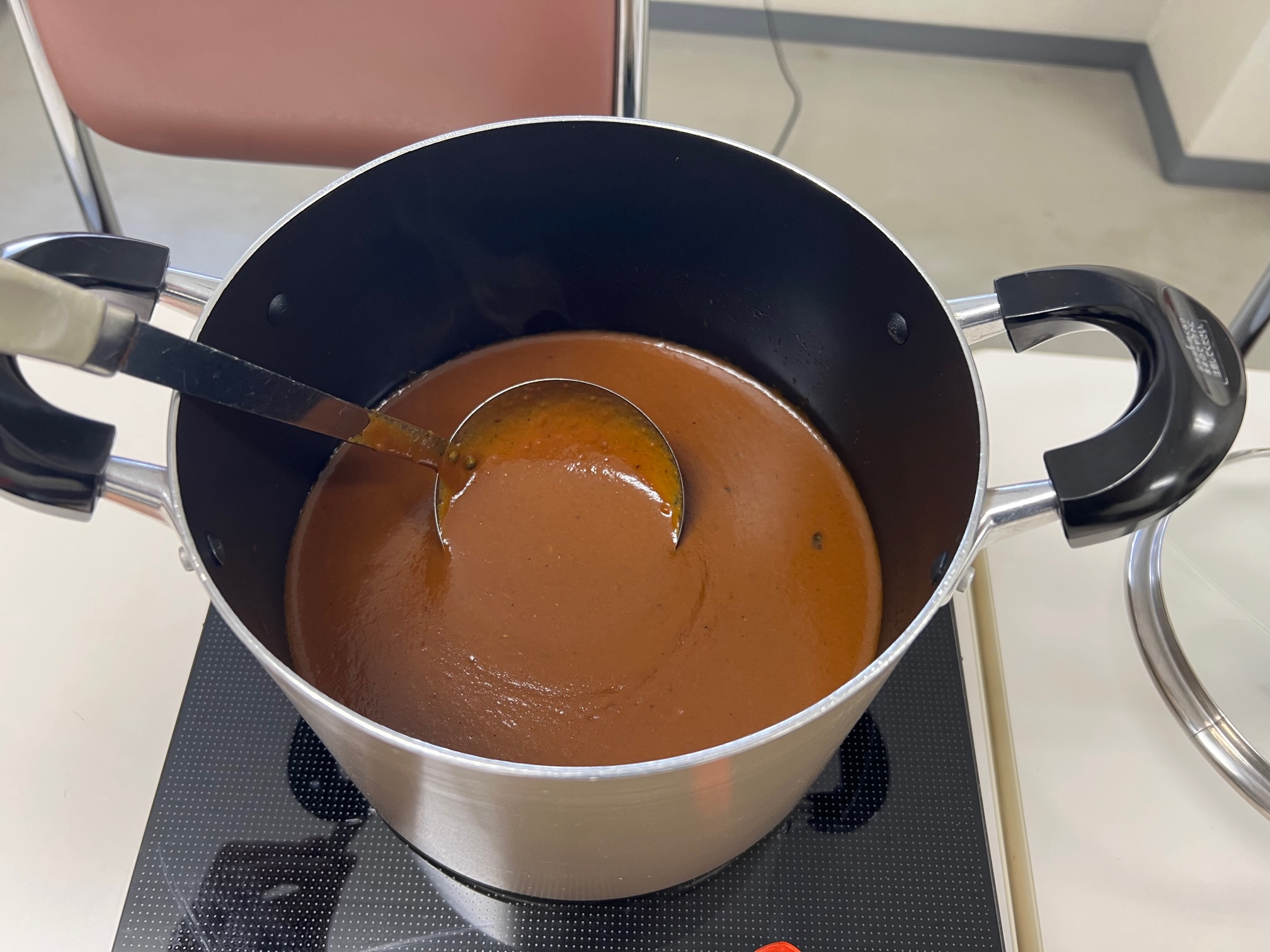 具材も残っていたので、翌日「英さん、ランチ作るから食べにきてくださいよ!」と総務のスタッフが声を掛けたところ、「良いんですか!」といって喜んで食べて貰うことができました。