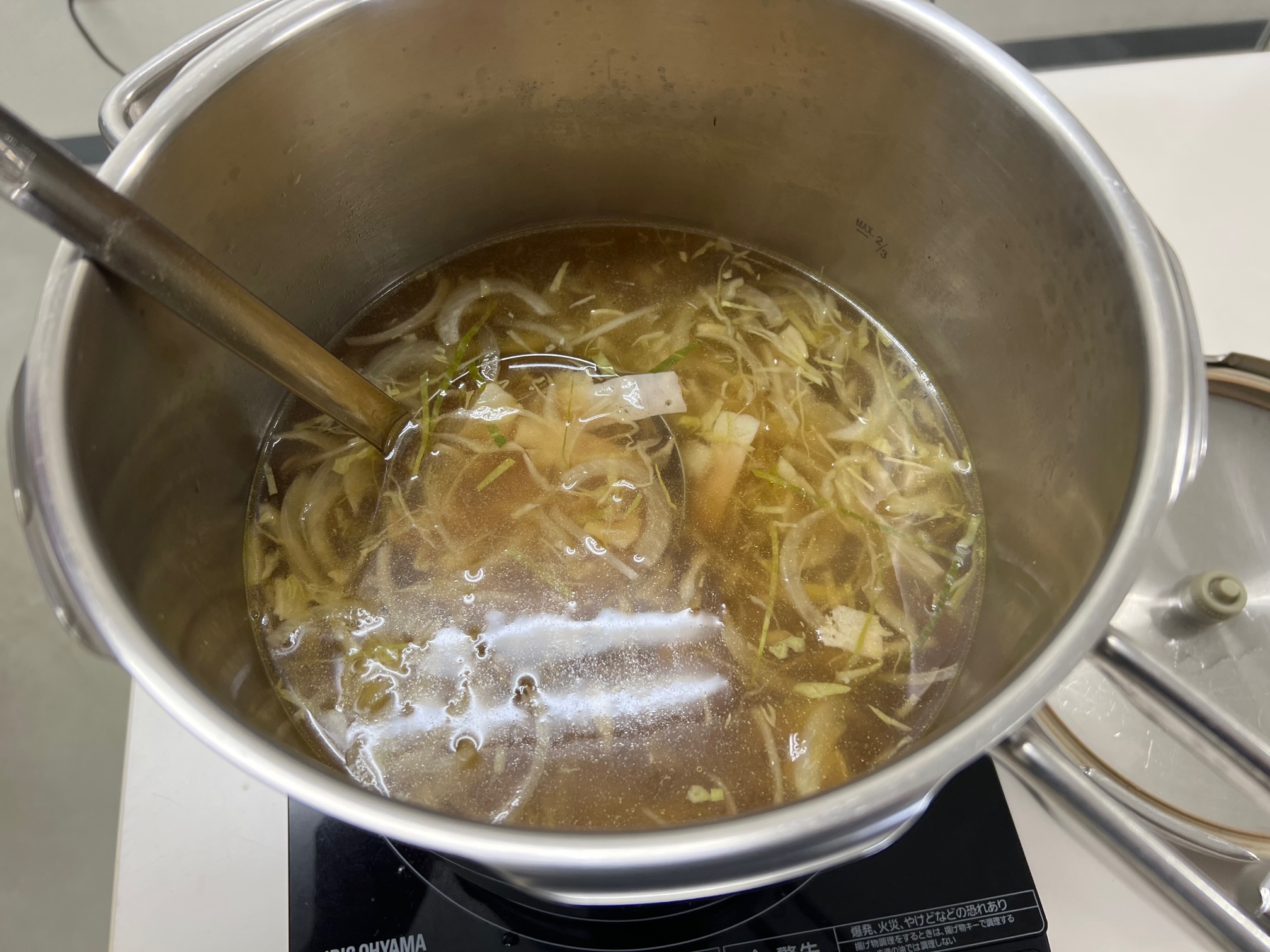 当日は朝からお米を炊き、キャベツの千切り、トマトとアボカドのカット、ソースとコンソメスープ作り、温泉たまご作りと、慌ただしく調理を進めていきます。
