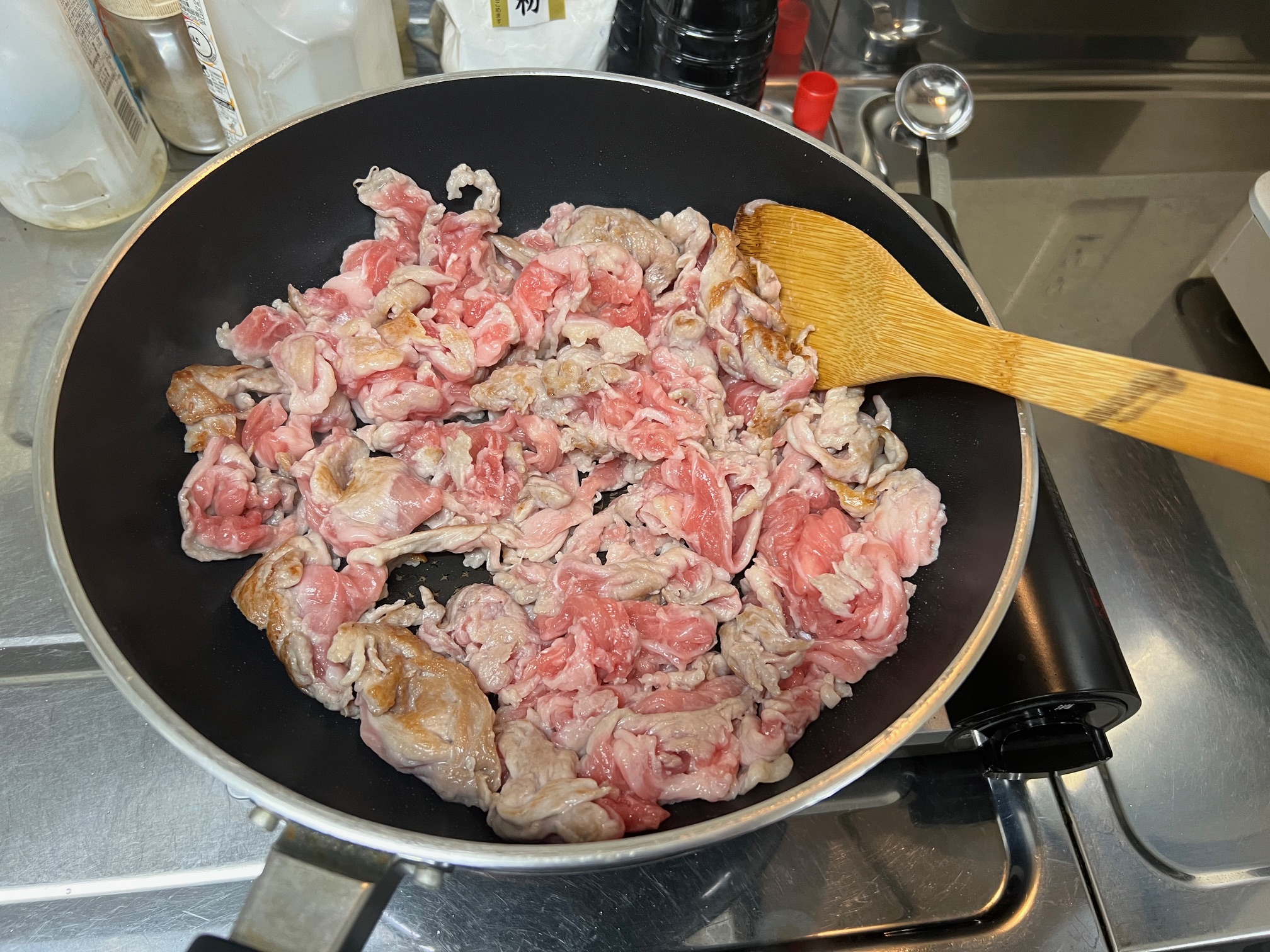 続いてフライパンにサラダ油を引き、軽く炒めてから寸胴鍋に投入していきます。
