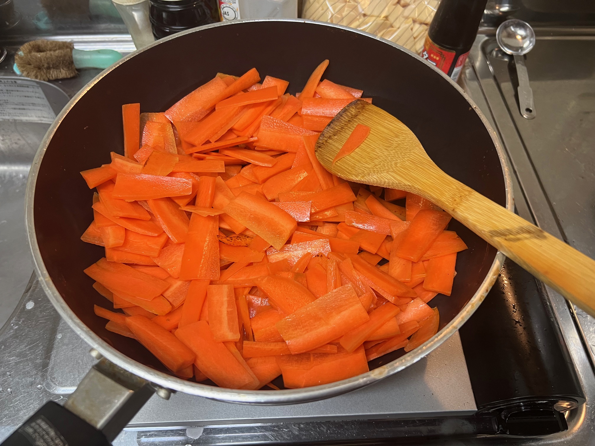 前日の仕込みは人参、キクラゲ、筍のカットくらいです。