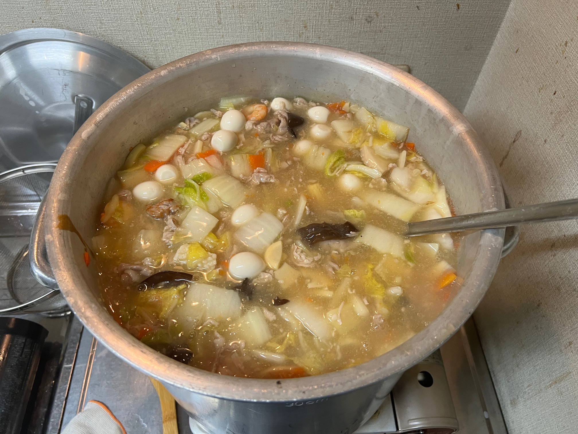 まだヤングコーンやうずらの卵を入れていないにも関わらず、鍋から溢れてしまいそうです。。。