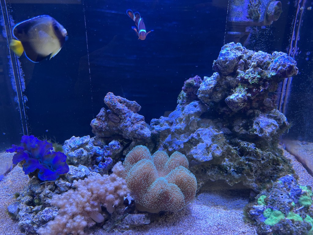 投入直後はカクレクマノミに少し追い回されて逃げ回っていましたが、お互いに慣れてきたのか、今はのんびり遊泳しています。