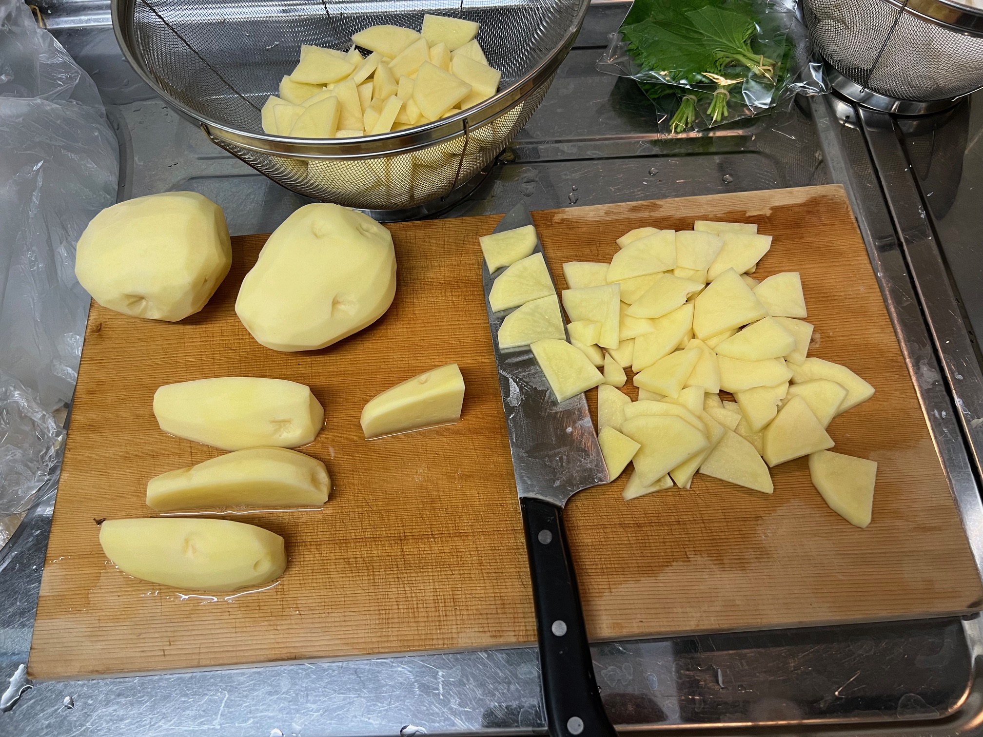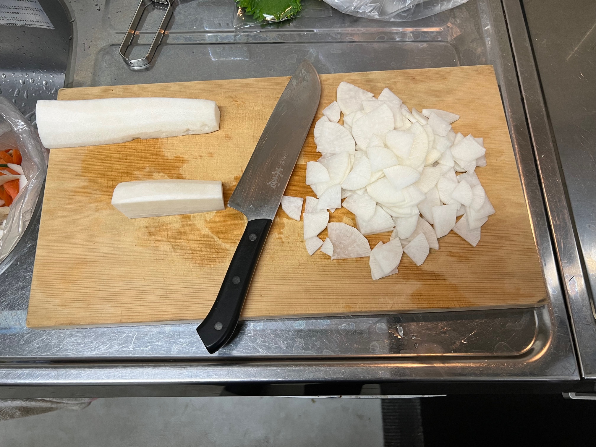 人参は小さかったので半月に、ジャガイモと大根はいちょう切りで切っておきます。