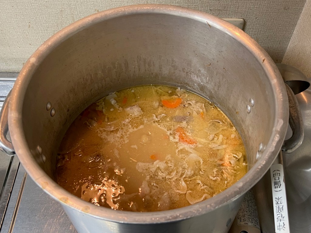 灰汁を取りながら煮込んで、合わせ味噌を溶かしたら完成です。