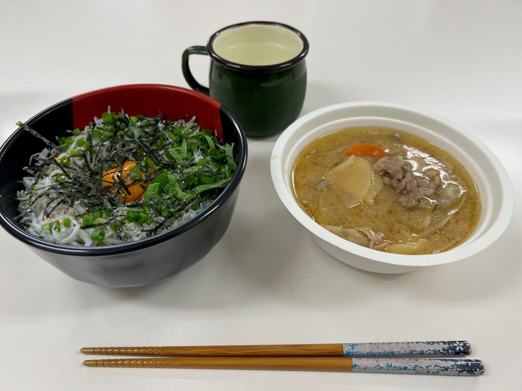 しらすが苦手ということで、豚汁とたまご掛けご飯・・・という人もいましたが、そこは無理強いも出来ませんので仕方ないですね。。。