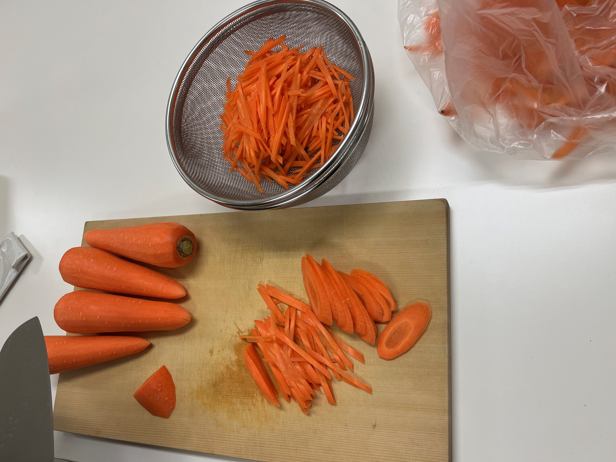 人参も同じくらいの長さで細切りにしていきます。