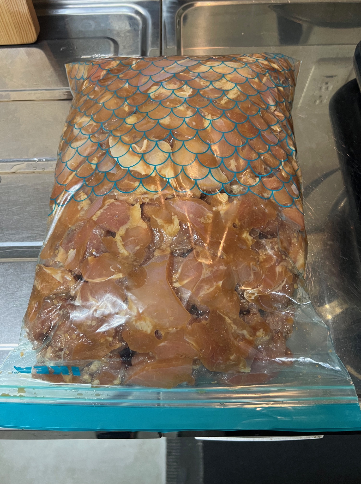そこで最近は、その揉み込んだからあげを、タレごとジップロックに入れて冷蔵庫で一晩寝かせることにしています。