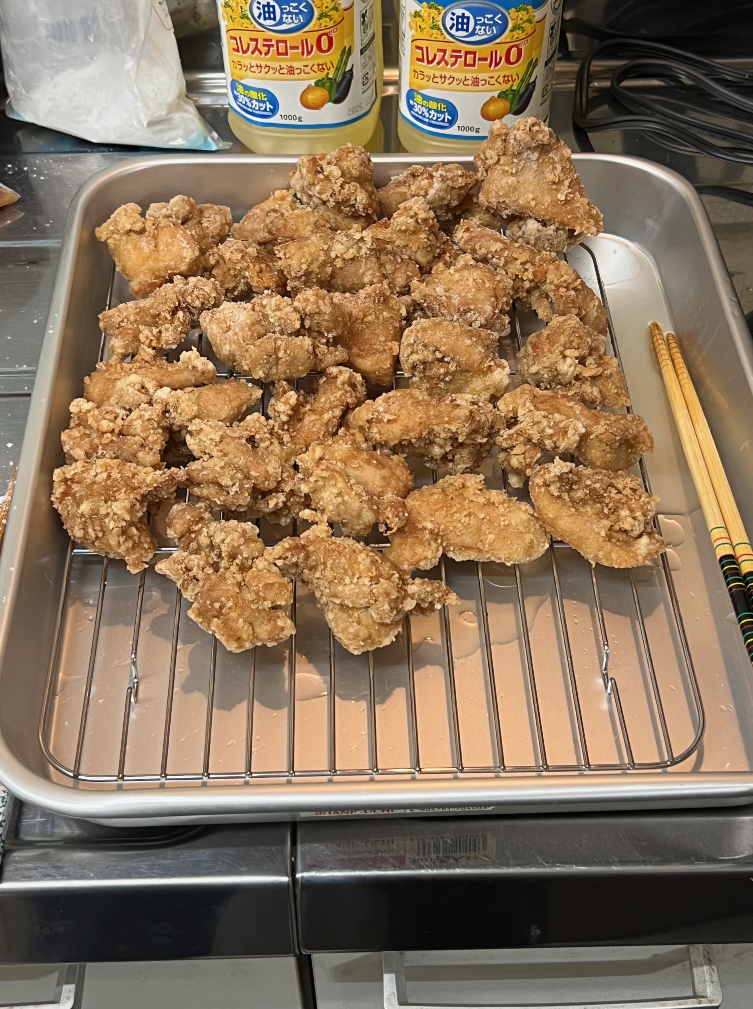 あと数人お代わりする人がいたら、みんなが食べ終わった後に食べる私たちのからあげが無くなってしまうところでした・・・