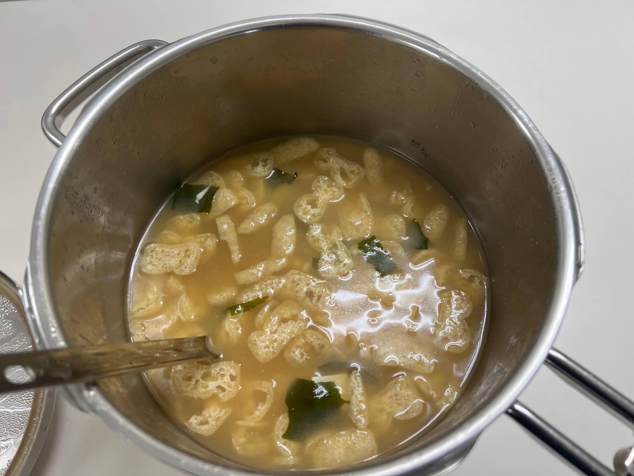 味噌汁とご飯も出来上がり、あとは盛り付ければ完成です!