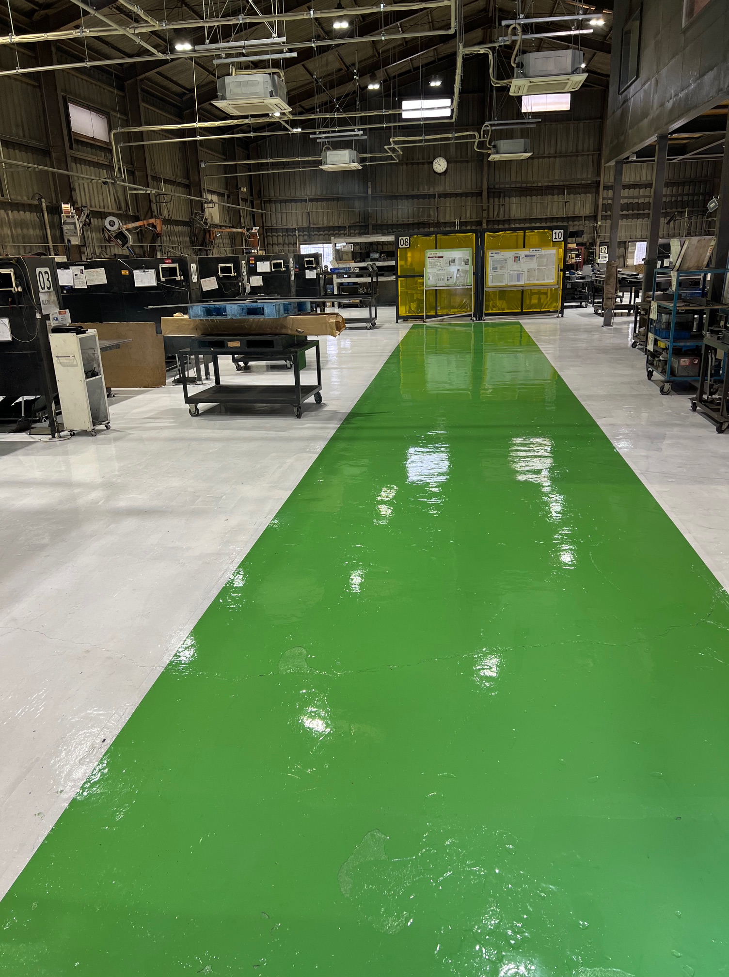 それから職場の片付けと掃き掃除をして、フロアのペンキ塗りです。