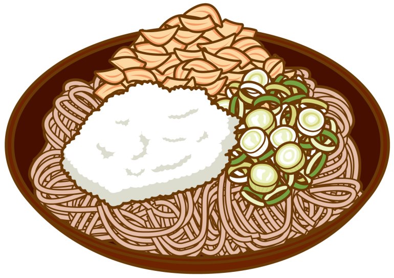 あとは皿に盛ったそばに大根おろし、薬味ネギ、天かす、刻みのりをのせ、麵つゆを掛けたら出来上がり!