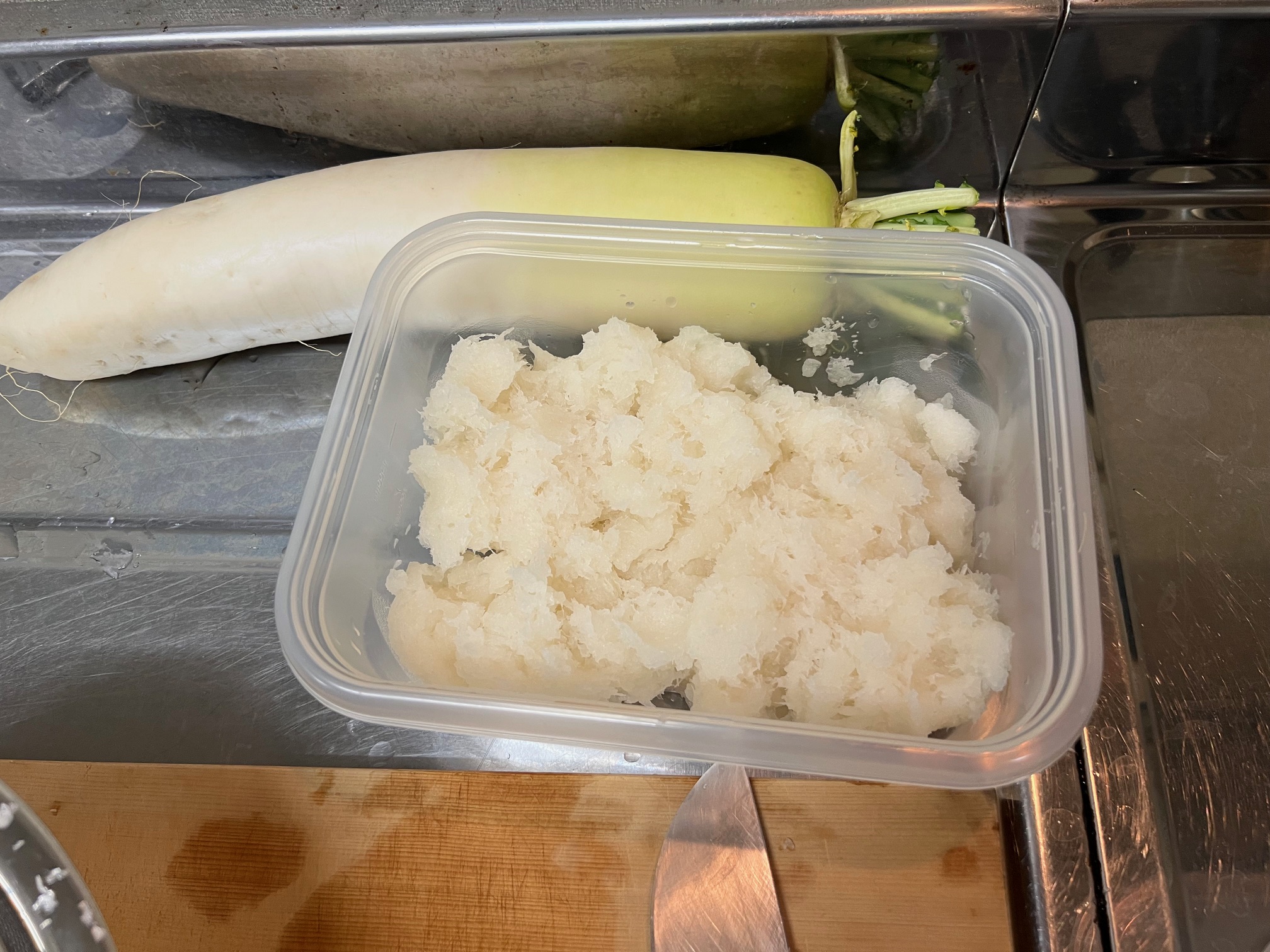 ご飯を炊いている間に、大根をおろしていきます。