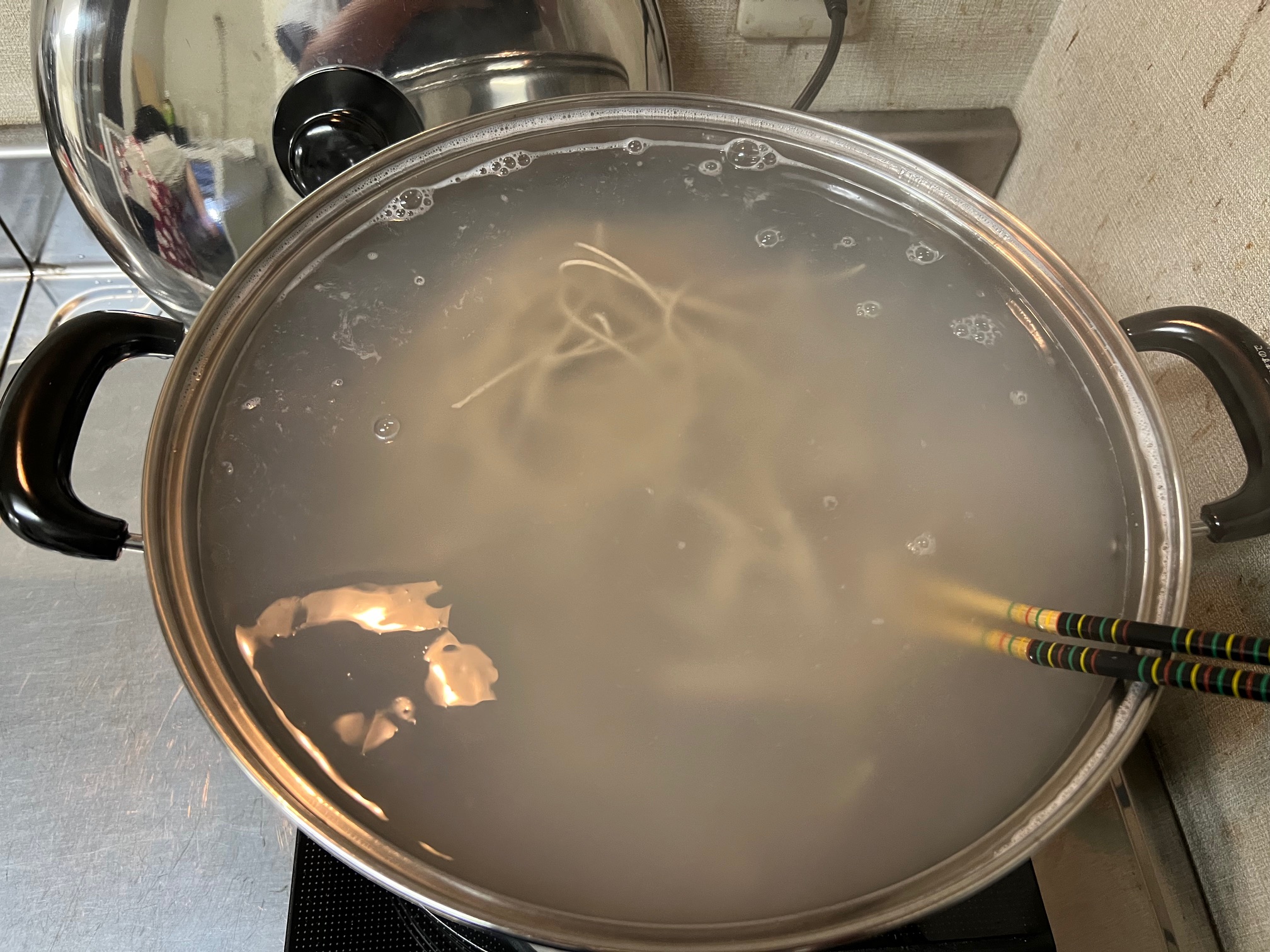 続いて沸騰させておいたお湯にそばを投入。