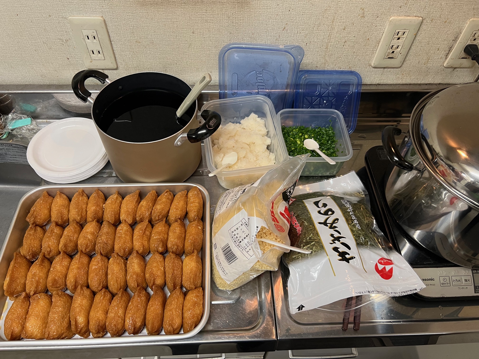 いなり寿司の揚げも120ヶ分買ってきていますので、これでちょうど良い加減のハズです。