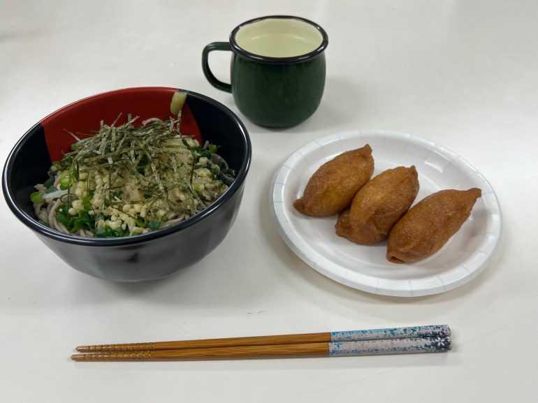 冷たくてさっぱり食べられる「冷やしおろしそば」と「いなり寿司」です!!