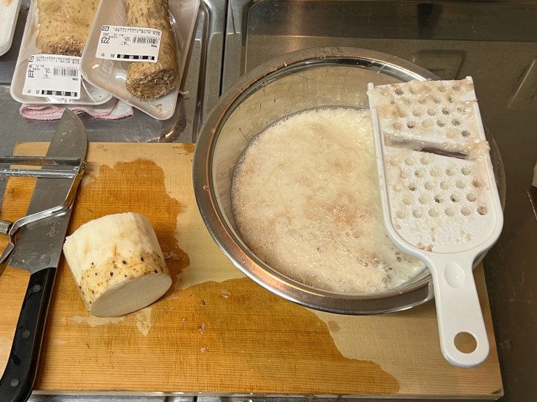 当日は朝一から米を炊き、炊き上がるまでの間に長芋をスリスリ・・・