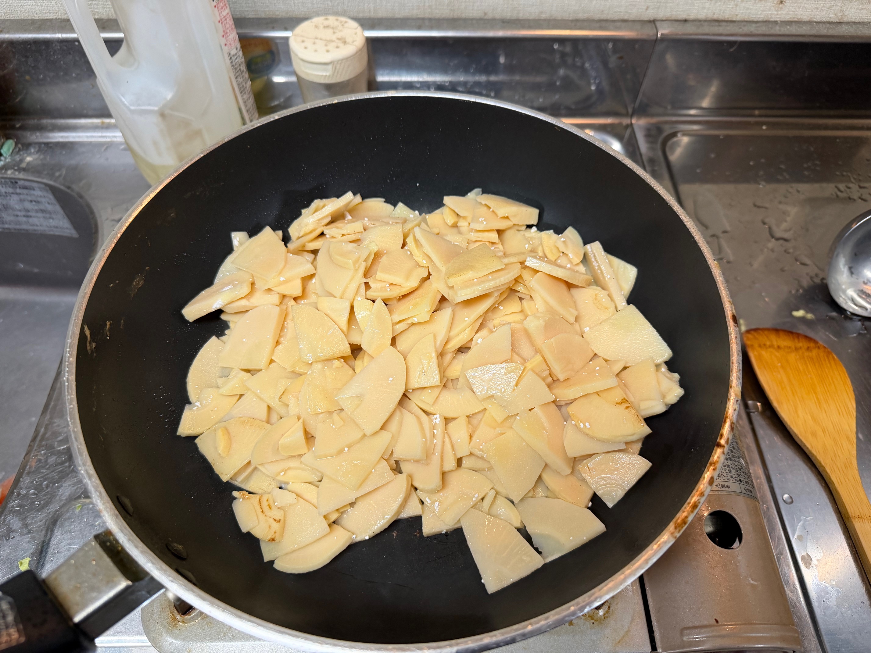 ここでは炒めるときに少し塩コショウをかけました。
